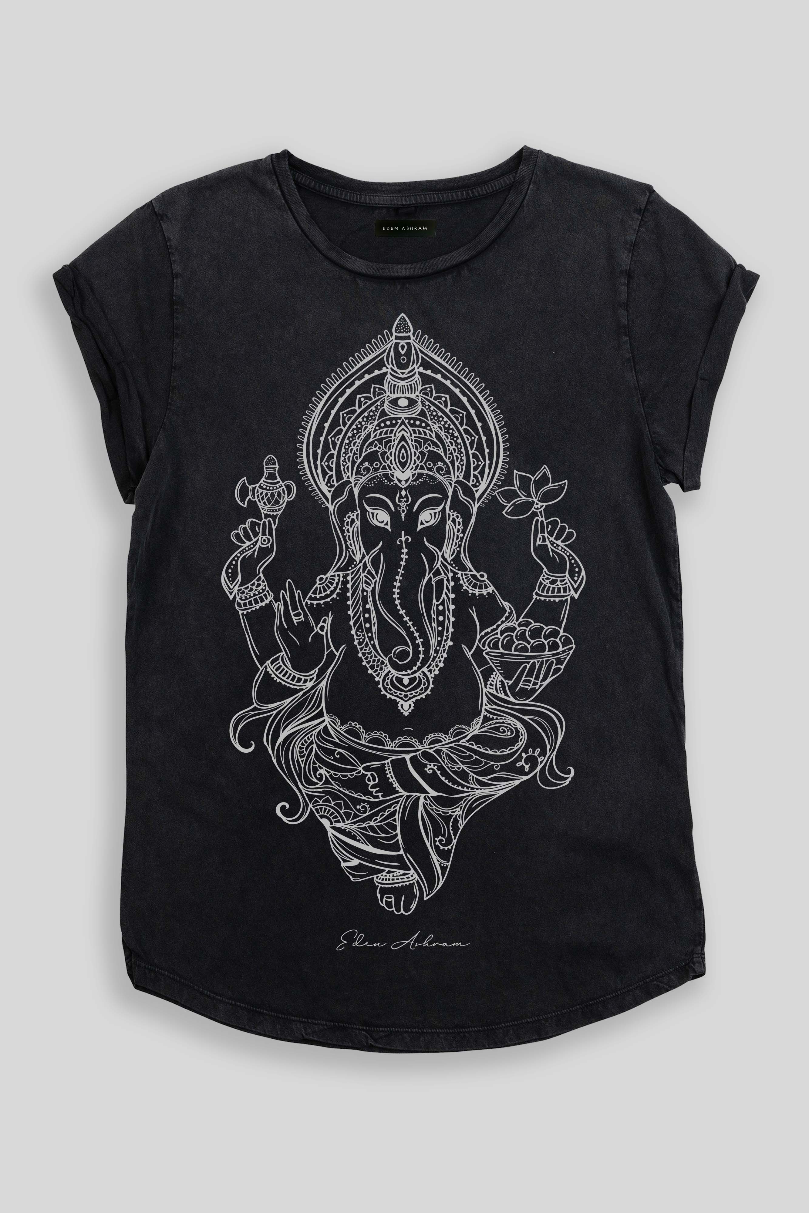 Eden Ashram Ganesha Premium Rolled Sleeve T-Shirt Stonewash Grey